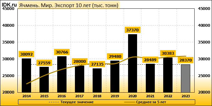 Импорт: составит 28370 тысяч тонн. Значение по прошествии месяца упало на -0.6 процента.