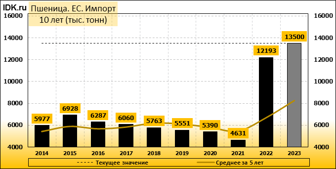 Импорт: составит 13500 тысяч тонн. Значение по прошествии месяца поднялось на 3.85 процента.