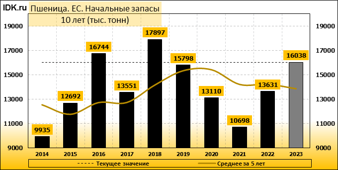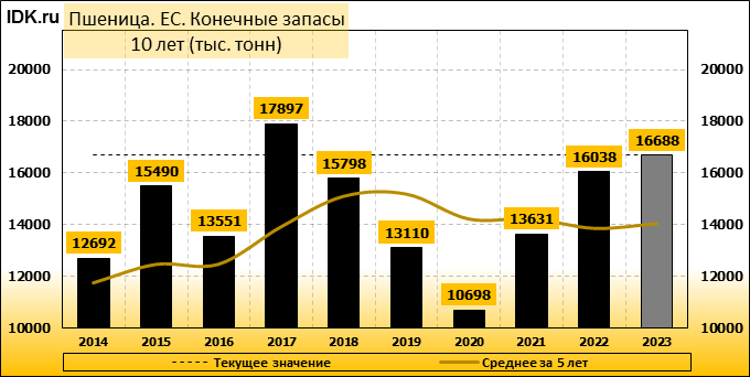 Конечные запасы: составят 16688 тысяч тонн. Оценка с последнего отчета подросла на 10.01 процента.
