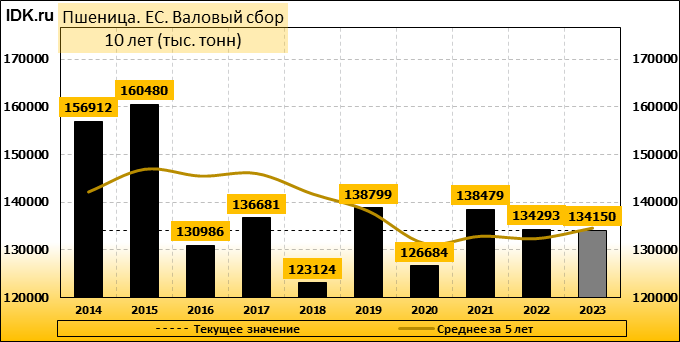 Валовый сбор: оценка пересмотрена в сторону повышения до 134150 тысяч тонн. Показатель вырос на 0.37 процента.