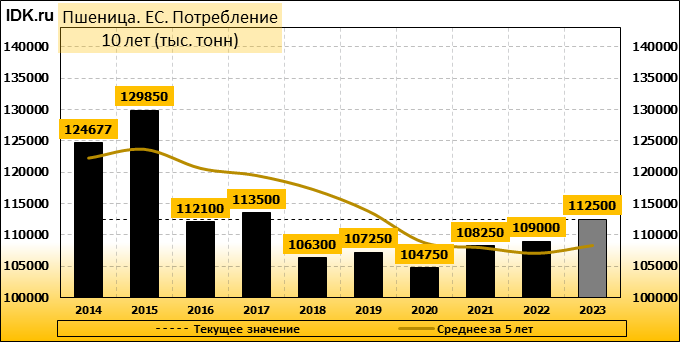 Потребление: показатель пересмотрен в сторону повышения до 112500 тысяч тонн. Значение выросло на 0.9 процента.