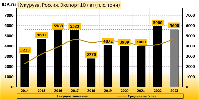 Экспорт: оценивается в 5600 тысяч тонн. За месяц показатель вырос на 5.66 процента.