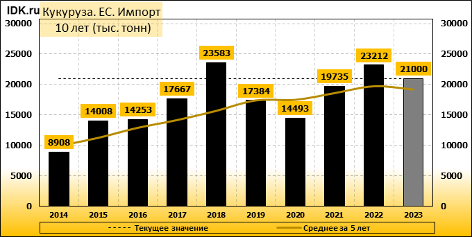 Импорт: составит 21000 тысяч тонн. Значение по прошествии месяца упало на -4.55 процента.