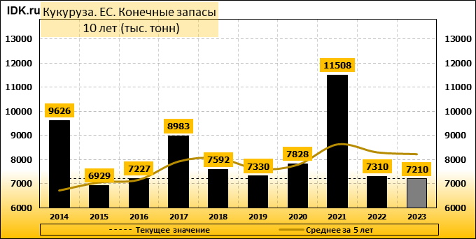 Конечные запасы: составят 7210 тысяч тонн. Оценка с последнего отчета снизилась на -0.32 процента.