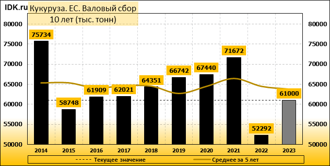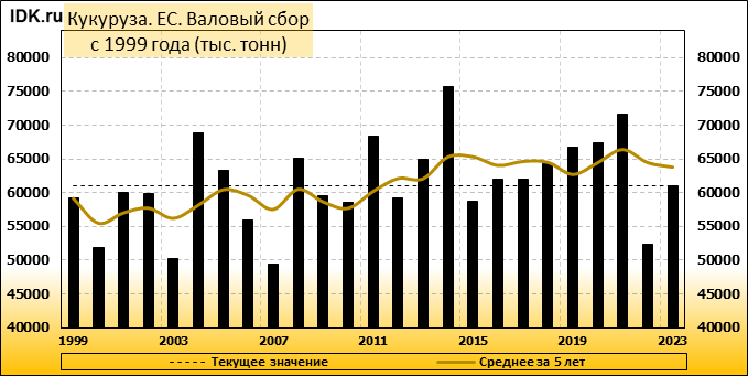 Валовый сбор: оценка пересмотрена в сторону повышения до 61000 тысяч тонн. Показатель вырос на 1.5 процента.