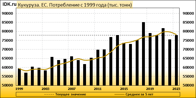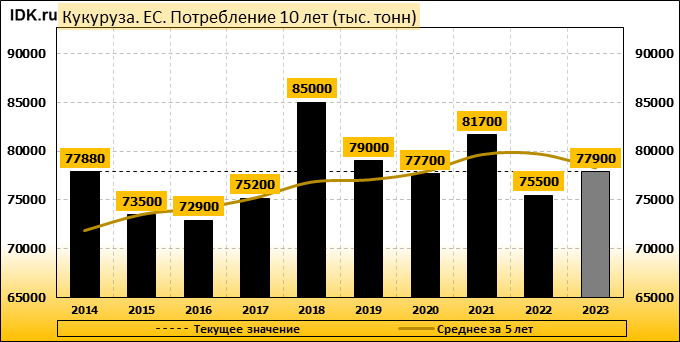 Потребление: показатель не изменился и составляет 77900 тысяч тонн.