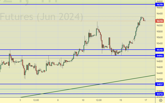 Покупка: нет. Кто в позиции от 95125, перенесите стоп на 95200. Цель: 96700.