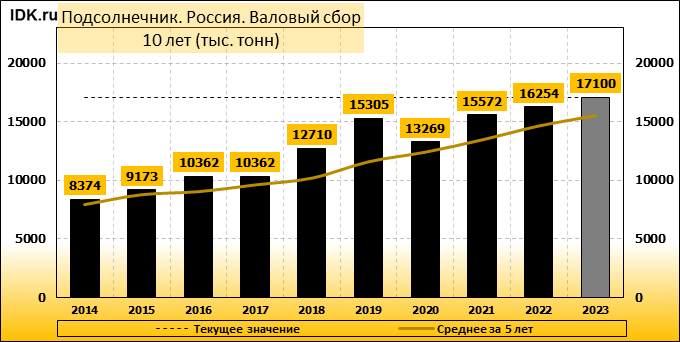 Валовый сбор: оценка не изменилась и составляет 17100 тысяч тонн.