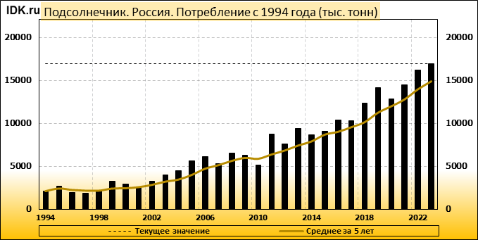 Потребление: показатель не изменился и составляет 16980 тысяч тонн.
