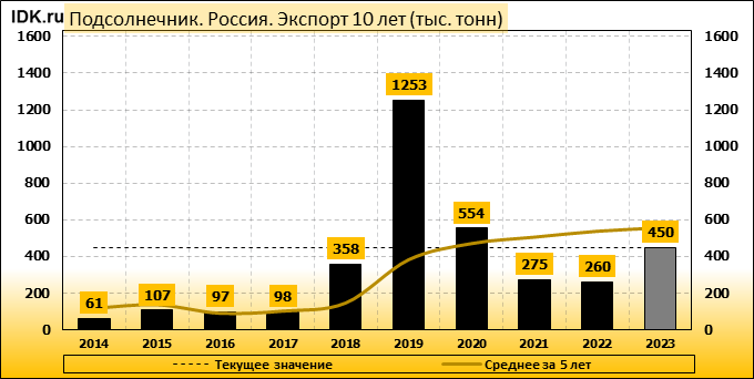 Экспорт: оценивается в 450 тысяч тонн. За месяц показатель не претерпел изменений.