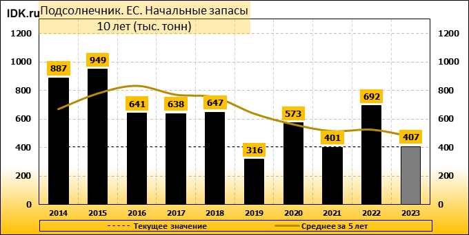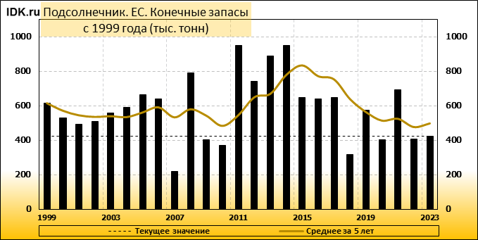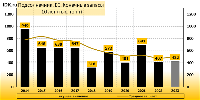 Конечные запасы: составят 422 тысячи тонн. Оценка с последнего отчета снизилась на -3.65 процента.