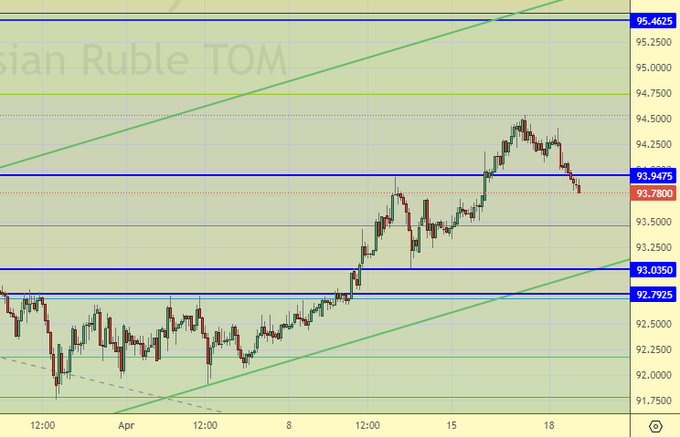Покупка: сейчас (93.78). Стоп: 93.38. Цель: 95.50 (97.00). Кто в позиции от 93.00, перенесите стоп на 93.38. Цель: 95.50 (97.00).