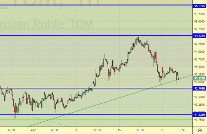 Хотим пробить линию поддержки вниз, но не можем. Да, в случае прохода ниже уровня 93.00 можем попытаться прийти к 92.00. Рубль был бы значительно крепче если бы не было СВО, даже при наличии всех текущих санкций. Правда, и санкции бы были не в таком объеме.