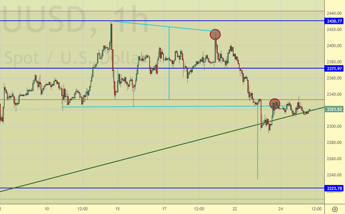 Продажа: сейчас (2321). Стоп: 2342. Цель: 2175. Или при подходе к 2370. Стоп: 2390. Цель: 2175. Кто в позиции от 2415, перенесите стоп на 2390. Цель: 2175.