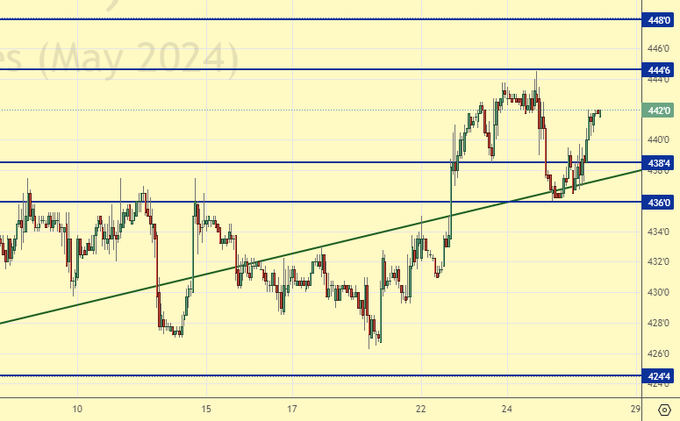 Покупка: нет. Кто в позиции от 436.6, перенесите стоп на 435.0. Цель: 550.0.