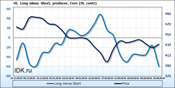 Открытый интерес производителей вырос на 11 тыс. контрактов. Объем контрактов, направленных на хеджирование, составляет 835 855 штук. Деньги производителей в течение прошлой недели приходили на рынок поддерживая тенденцию.