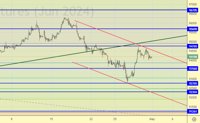 Продажа: нет. Кто в позиции от 94500 и 94100, держите стоп на 95300. Цель: 90000.