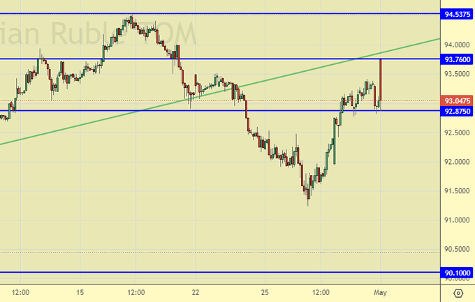 Продажа: сейчас (93.04). Стоп: 94.70. Цель: 88.00.