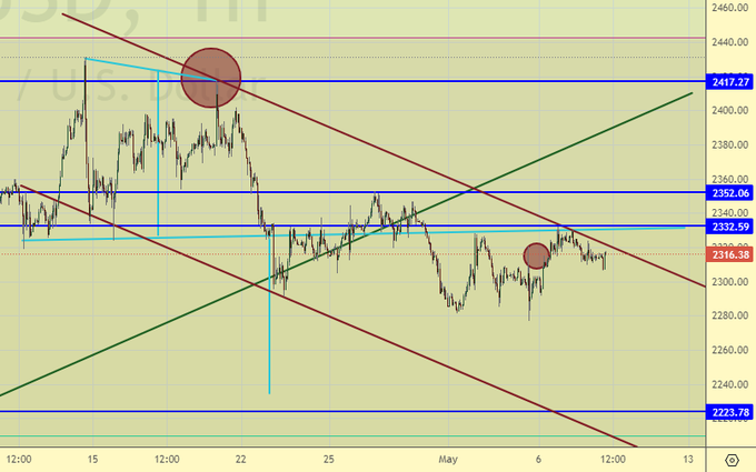Продажа: нет. Кто в позиции от 2415 и 2336, держите стоп на 2353. Цель: 2100.