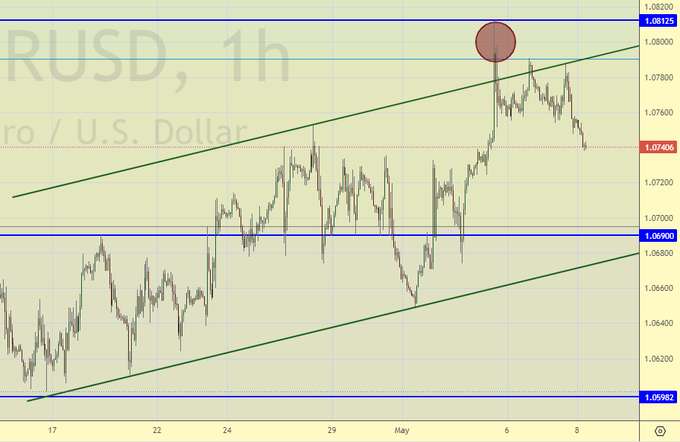 Уходим вниз от 1.0800. Пока имеет смысл держать шорт. Если несмотря на то, что укрепление доллара уже всем понятно, и очевидно, мы действительно продолжим падать, то это будет говорить о сильной позиции продавцов евро, что может привести к далеко идущим последствиям.