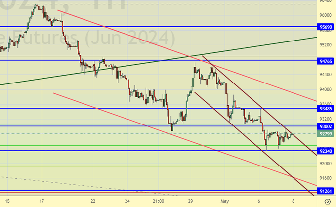Продажа: нет. Кто в позиции от 93.04, держите стоп на 93.40. Цель: 89.40 (пересмотрена).