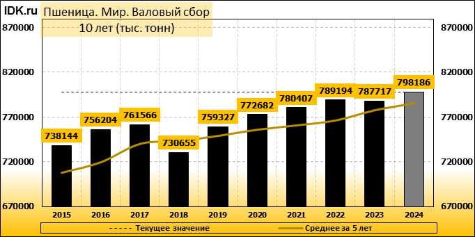 Валовый сбор: майская оценка сезона 24/25 составляет 798186 тысяч тонн.