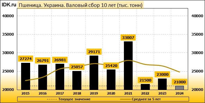 Валовый сбор: майская оценка сезона 24/25 составляет 21000 тысяч тонн.