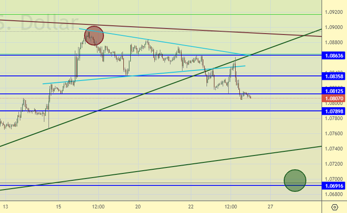 Пока быков по евро раздавили агрессивные намеки ФРС. Мы можем рассчитывать на ход к 1.0700, более сильное падение должно быть поддержано хотя бы опережающими индикаторами, говорящими о сохранении высокой инфляции.