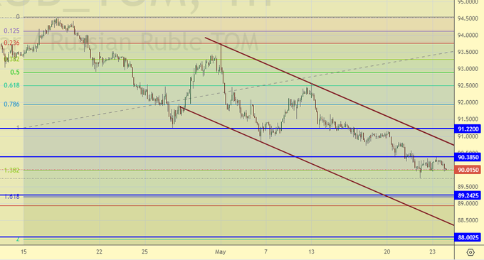 Мы стоим над 90.00, что снижает шансы на то, что мы сможем пробиться к 89.30. Сегодня пятница и немногие рискнут оставлять лонги по рублю на выходные. Политик роятся над кучами, и в любой момент может произойти очередной выброс.