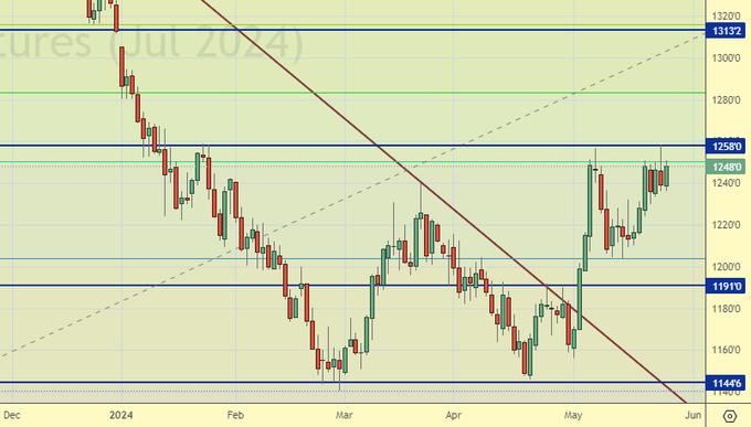 Сценарий роста: рассматриваем июньский фьючерс, дата экспирации 20 июня. А мы уже расстраиваться стали на прошлой неделе, тренд, мол, пропустили. А он по факту вялый оказался. Вне рынка.
