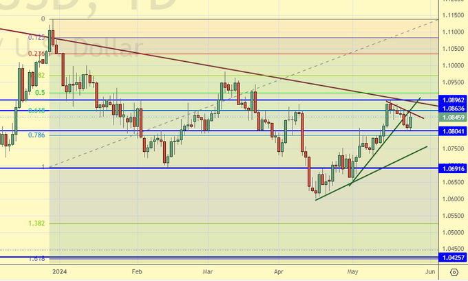 Продажа: нет. Кто в позиции от 1.0867, перенесите стоп на 1.0910. Цель: 1.0000.