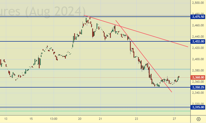 Продажа: нет. Кто в позиции от 2440 (с учетом перехода на новый фьючерс), перенесите стоп на 2370. Цель: 2220 (2020?!).
