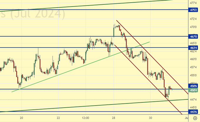 Продажа: нет. Кто в позиции от 460.6, перенесите стоп на 461.0. Цель: 360.0?!