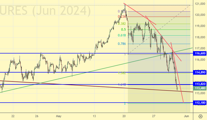 Продажа: нет. Кто в позиции от 118960, перенесите стоп на 114000. Цель: 100000.