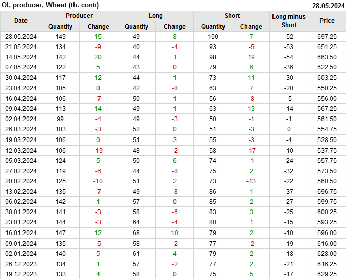 Открытый интерес производителей вырос на 15 тыс. контрактов. Объем контрактов, направленных на хеджирование, составляет 148 934 штуки. Деньги производителей в течение прошлой недели приходили на рынок поддерживая тенденцию.