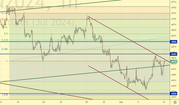 Кукуруза (июльский контракт, CME Group, исполнение 12.07.2024)