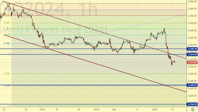 Продажа: при подходе к 2360. Стоп: 2400. Цель: 2200.