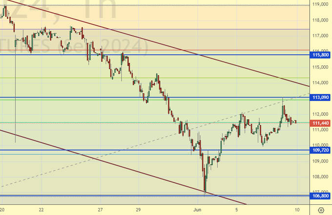 Продажа: нет. Кто в позиции от 113200, перенесите стоп на 113200. Цель: 101500.