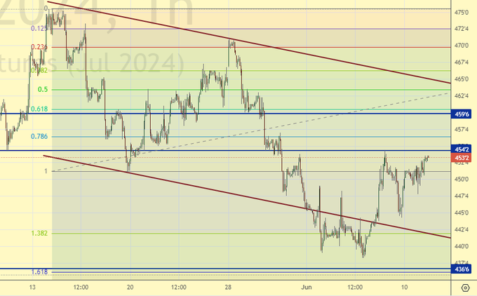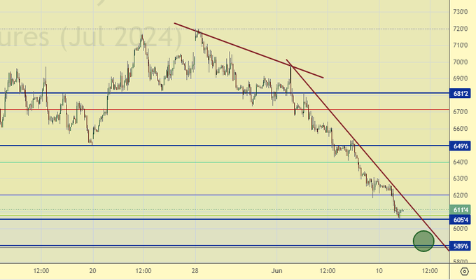 Пшеница (июльский контракт, CME Group, исполнение 12.07.2024)