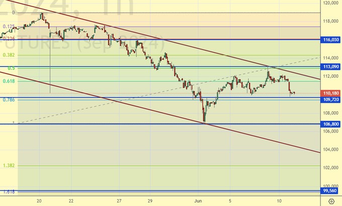 Посмотрим как индекс разберется с уровнем 110000. Если мы пройдем ниже, то имеет смысл поискать возможности для входа в шорт. Если останемся выше, то… просто будем наблюдать за развитием событий. Но явных рекомендаций сегодня давать не будем.