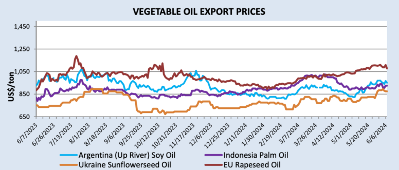 Цены на сою для основных экспортеров снизились со времени последнего отчета WASDE об улучшении посевов в США и обширных прогнозах мировых поставок. Цены на соевый шрот также снизились на фоне снижения цен на сою и обильных поставок со стороны основных производителей шрота. В Южной Америке произошло значительное повышение цен на соевое масло, главным образом, благодаря высокому внутреннему спросу в Бразилии. Опасения по поводу урожая рапса в Европе также привели к росту цен на растительное масло.