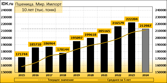 Импорт: составит 212987 тысяч тонн. Значение по прошествии месяца упало на -1.1 процента.