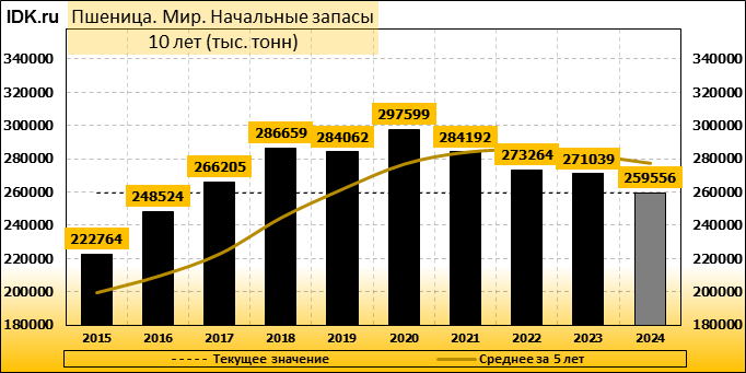 Конечные запасы: составят 252268 тысяч тонн. Оценка с последнего отчета снизилась на -0.53 процента.