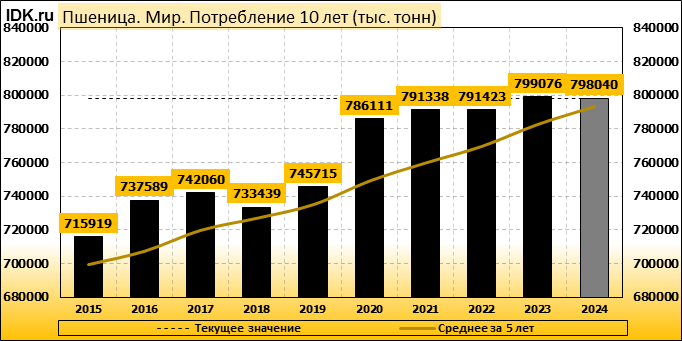 Потребление: показатель пересмотрен в сторону понижения до 798040 тысяч тонн. Значение упало на -0.54 процента.