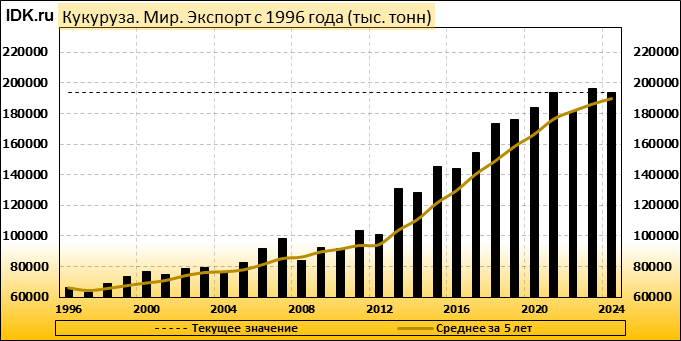 Экспорт: оценивается в 193911 тысяч тонн. За месяц показатель вырос на 0.65 процента.