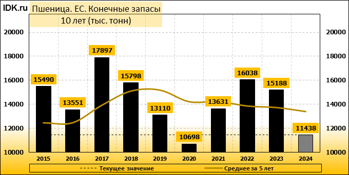 Конечные запасы: составят 11438 тысяч тонн. Оценка с последнего отчета снизилась на -20.78 процента.