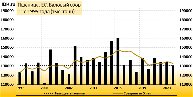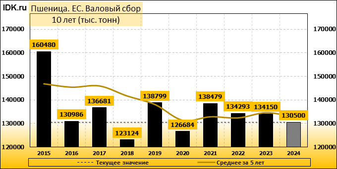 Валовый сбор: оценка пересмотрена в сторону понижения до 130500 тысяч тонн. Показатель упал на -1.14 процента.