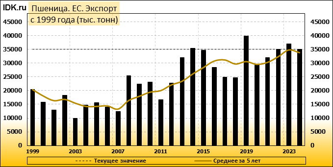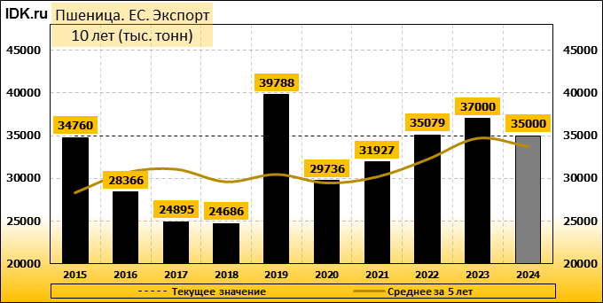Экспорт: оценивается в 35000 тысяч тонн. За месяц показатель вырос на 2.94 процента.