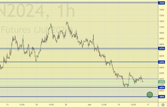 При этом в другие страны смогли компенсировать позитив и негатив друг друга. По итогу падение валового сбора на 4 млн. тонн в мире это ничто. Поэтому, будем крайне подозрительно относиться к любому росту на данном рынке. Отметим, что с точки зрения техники, купить от 590.0 будет интересно.