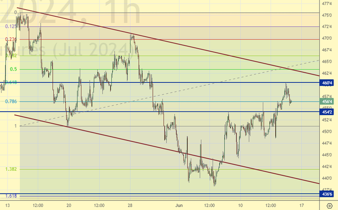 Видим неуверенное восхождение. Шансов на то, что мы пройдем выше 465.0 очень мало. Без искусственного стресса данный рынок расти не должен. Кукурузы будет море.